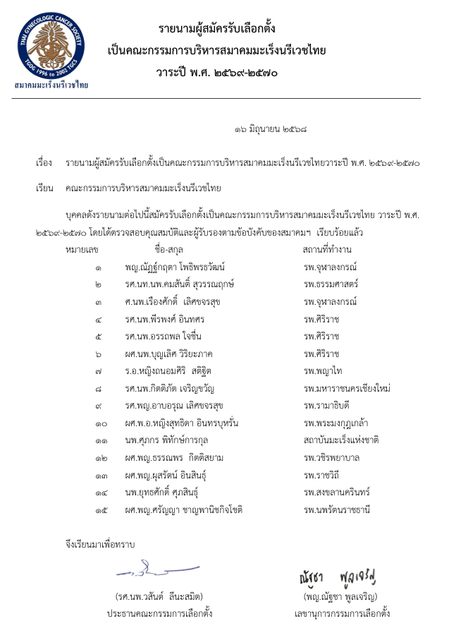 “ศ.พญ.ศิริวรรณ ตั้งจิตกมล นายกสมาคมมะเร็งนรีเวชไท…
